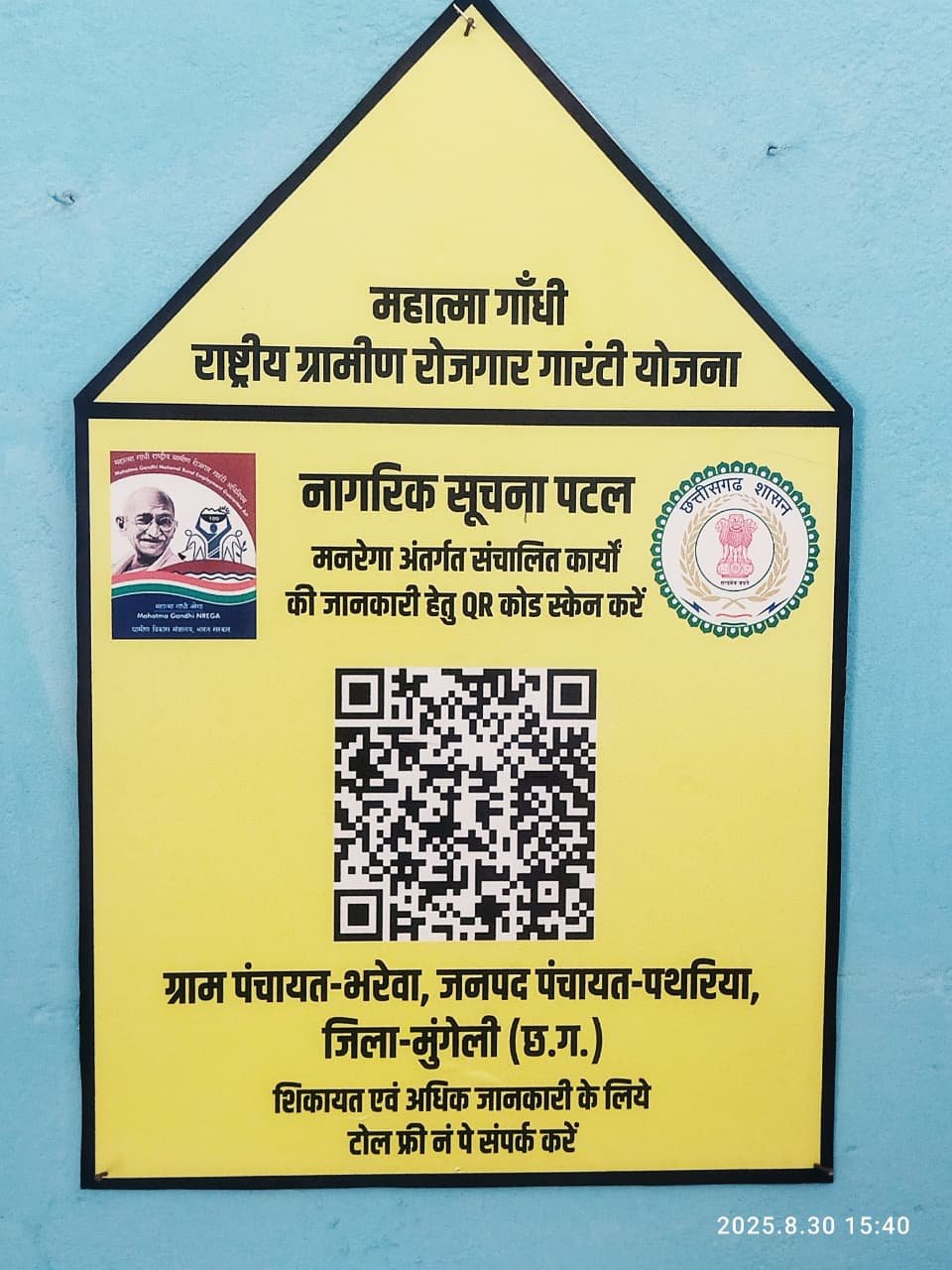 मुंगेली छत्तीसगढ़ क्यूआर कोड से मनरेगा कार्यों की निगरानी के साथ 03 वर्षों के कार्यों की मिलेगी जानकारी September 4, 2025 Shailendra Gupta मुंगेली, 04 सितम्बर 2025 । महात्मा गाँधी राष्ट्रीय ग्रामीण रोजगार गारंटी योजना (मनरेगा) के कार्यों में पारदर्शिता और जनभागीदारी सुनिश्चित करने के उद्देश्य से जिला प्रशासन मुंगेली ने नई पहल…