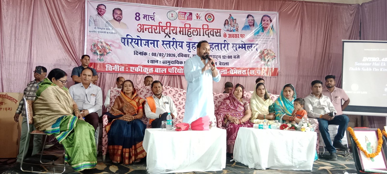बेमेतरा छत्तीसगढ़ अंतर्राष्ट्रीय महिला दिवस पर बेरला में हुआ भव्य कार्यक्रम, महिलाओं के सम्मान व सशक्तिकरण पर दिया गया जोर March 8, 2026 Shailendra Gupta बेमेतरा, 08 मार्च 2026 । महिला एवं बाल विकास विभाग के निर्देशानुसार अंतर्राष्ट्रीय महिला दिवस के अवसर पर महिलाओं के प्रति सम्मान, प्रशंसा और प्रेम प्रकट करने तथा उनकी आर्थिक,…