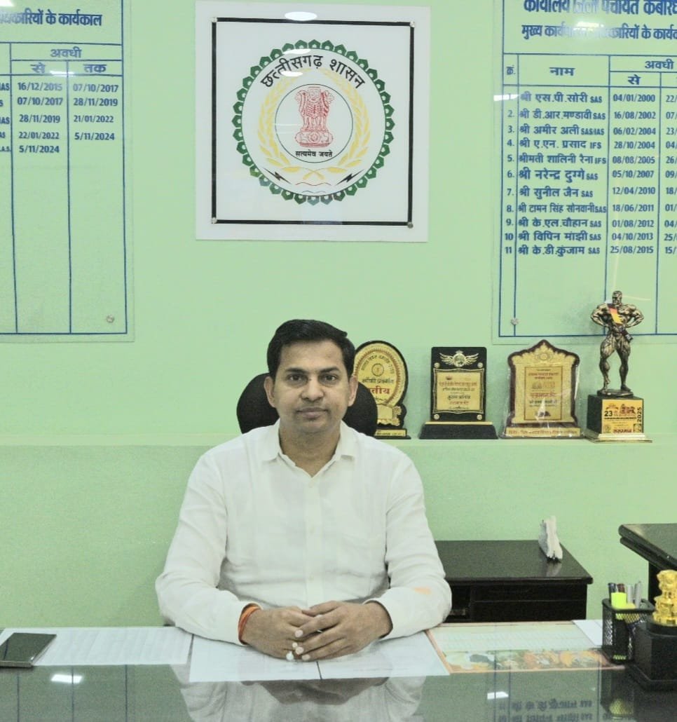 कबीरधाम कवर्धा छत्तीसगढ़ अभिषेक अग्रवाल ने मुख्य कार्यपालन अधिकारी जिला पंचायत कबीरधाम का पदभार ग्रहण किया February 23, 2026 Shailendra Gupta कवर्धा, 23 फरवरी 2026। जिला पंचायत कबीरधाम के नवनियुक्त मुख्य कार्यपालन अधिकारी अभिषेक अग्रवाल ने आज भोरमदेव मंदिर पहुंचकर बाबा भोरमदेव की पूजा अर्चना करने के बाद अपना पदभार ग्रहण…