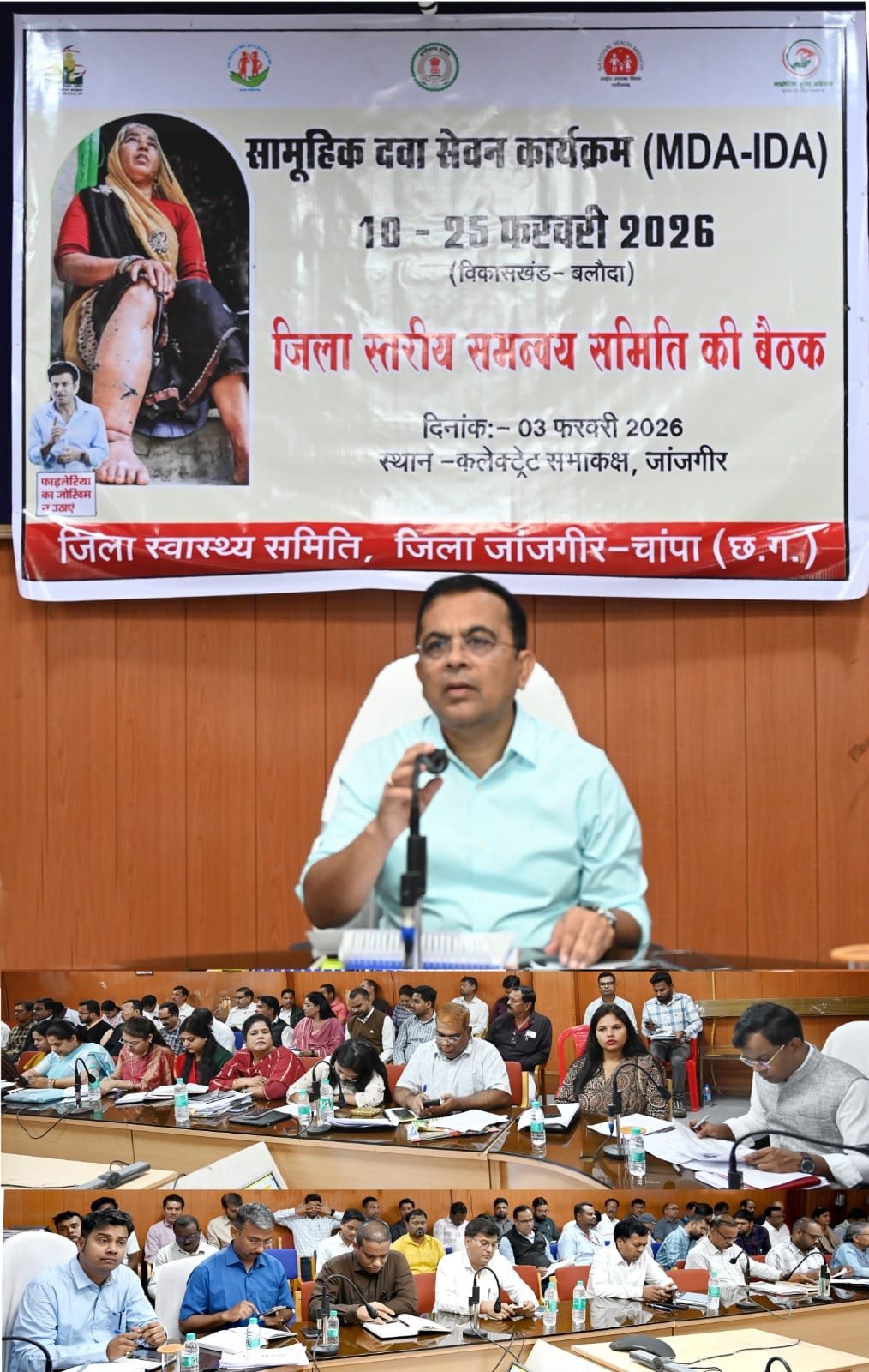 जांजगीर-चांपा छत्तीसगढ़ कलेक्टर जन्मेजय महोबे की अध्यक्षता में राष्ट्रीय फाइलेरिया उन्मूलन कार्यक्रम के संबंध में बैठक आयोजित February 3, 2026 Shailendra Gupta जांजगीर-चांपा, 03 फरवरी 2026 । राष्ट्रीय फाइलेरिया उन्मूलन कार्यक्रम अंतर्गत सामूहिक दवा सेवन गतिविधि 10 से 25 फरवरी 2025 तक जिले के विकासखण्ड बलौदा में आयोजित किया जाएगा। इस संबंध…