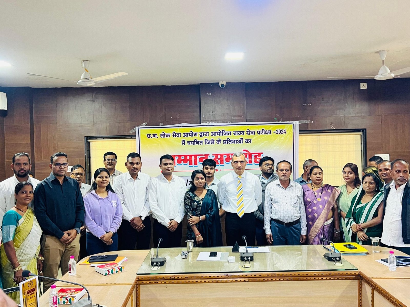 बेमेतरा 25 नवंबर 2025:- राज्य सेवा परीक्षा (CGPSC) 2024 में चयनित बेमेतरा जिले के प्रतिभाशाली अभ्यर्थियों का सम्मान आज कलेक्टरेट के दृष्टि सभाकक्ष में किया गया। कार्यक्रम में कलेक्टर रणबीर शर्मा ने सभी चयनित अभ्यर्थियों को साल एवं श्रीफल भेंटकर सम्मानित किया तथा उनके उज्ज्वल भविष्य की कामना की। कलेक्टर ने कहा कि बेमेतरा जिले के युवाओं ने अपनी लगन, परिश्रम और अनुशासन से यह सफलता अर्जित की है। उनका यह उपलब्धि पूरे जिले के लिए गर्व का विषय है। उन्होंने अभ्यर्थियों को आगे की सेवाओं में जनता की भलाई और पारदर्शिता को सर्वोच्च प्राथमिकता देने की प्रेरणा दी।सम्मानित अभ्यर्थियों मे सुमिता टोंडरे, पिता – संजय टोंडरे, चयनित पद डिप्टी कलेक्टर मो. नं. 6265158073, संदीप बघेल, पिता – कुमार बघेल, चयनित पद उप पुलिस अधीक्षक (DSP) मो. नं. 9340323623, किशोर कुमार जायसवाल, पिता गोविंद जायसवाल चयनित पद — सहायक जेल अधीक्षक मो. नं. 8839864415, भगवंता साहू, पिता – आनंद राम साहू चयनित पद — अधीनस्थ लेखा सेवा अधिकारी, मो. नं. 9165616655, सु नेहा मार्कण्डेय, पिता – पूरन मार्कण्डेय चयनित पद — अधीनस्थ लेखा सेवा अधिकारी मो. नं. 7415057326 लक्ष्मी देवांगन, पिता – रामजी देवांगन, चयनित पद — आबकारी उप निरीक्षक मो. नं. 9754421750, मोनिका वर्मा, पिता – संतोष वर्माच यनित पद — राज्य कर निरीक्षकमो . नं. 6264075024 | कार्यक्रम में उपस्थित अधिकारियों ने चयनित युवाओं को शुभकामनाएँ दीं और कहा कि उनकी यह उपलब्धि जिले के अन्य युवाओं को भी प्रेरणा देगी। सम्मान समारोह सौहार्दपूर्ण वातावरण में सम्पन्न हुआ और अंत में कलेक्टर रणबीर शर्मा ने सभी चयनित अभ्यर्थियों को उनके सफल भविष्य के लिए शुभकामनाएँ प्रेषित कीं। Post navigationजिला अस्पताल कबीरधाम में मॉडल आपदा प्रबंधन योजना के सशक्त क्रियान्वयन की शुरुआत सरकार की बेहतर व्यवस्था से किसान पीलूराम साहू को मिली बड़ी राहत