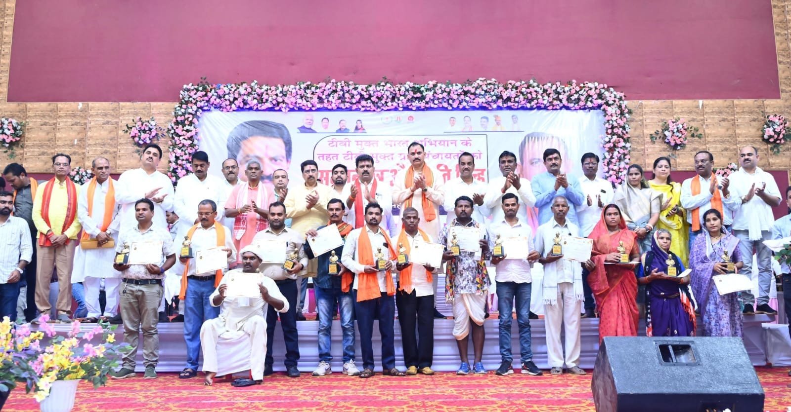 कवर्धा, 25 जुलाई 2025। टीबी मुक्त भारत अभियान के अंतर्गत मुख्यमंत्री विष्णुदेव साय के नेतृत्व में सरकार द्वारा संचालित अभियान में कबीरधाम जिले की 84 ग्राम पंचायतों को टीबी मुक्त होने का गौरव प्राप्त हुआ है। इस उल्लेखनीय उपलब्धि के उपलक्ष्य में आज पीजी कॉलेज ऑडिटोरियम, कवर्धा में आयोजित सम्मान समारोह में प्रदेश के उपमुख्यमंत्री विजय शर्मा और स्वास्थ्य मंत्री श्याम बिहारी जायसवाल ने 84 ग्राम पंचायतों को प्रमाण पत्र एवं स्मृति चिन्ह प्रदान कर सम्मानित किया। इस अवसर पर छत्तीसगढ़ गोसेवा आयोग अध्यक्ष विशेषर पटेल, सीजीएमएससी बोर्ड के अध्यक्ष दीपक महसके, कलेक्टर गोपाल वर्मा, जिला पंचायत अध्यक्ष ईश्वरी साहू, नगरपालिका परिषद कवर्धा अध्यक्ष चंदप्रकाश चंद्रवंशी, जिला पंचायत उपाध्यक्ष कैलाश चंद्रवंशी, जिला पंचायत सदस्य रामकुमार भट्ट, जिला पंचायत सीईओ अजय त्रिपाठी, सहित कई जनप्रतिनिधिगण और प्रशासनिक अधिकारी उपस्थित रहे।
