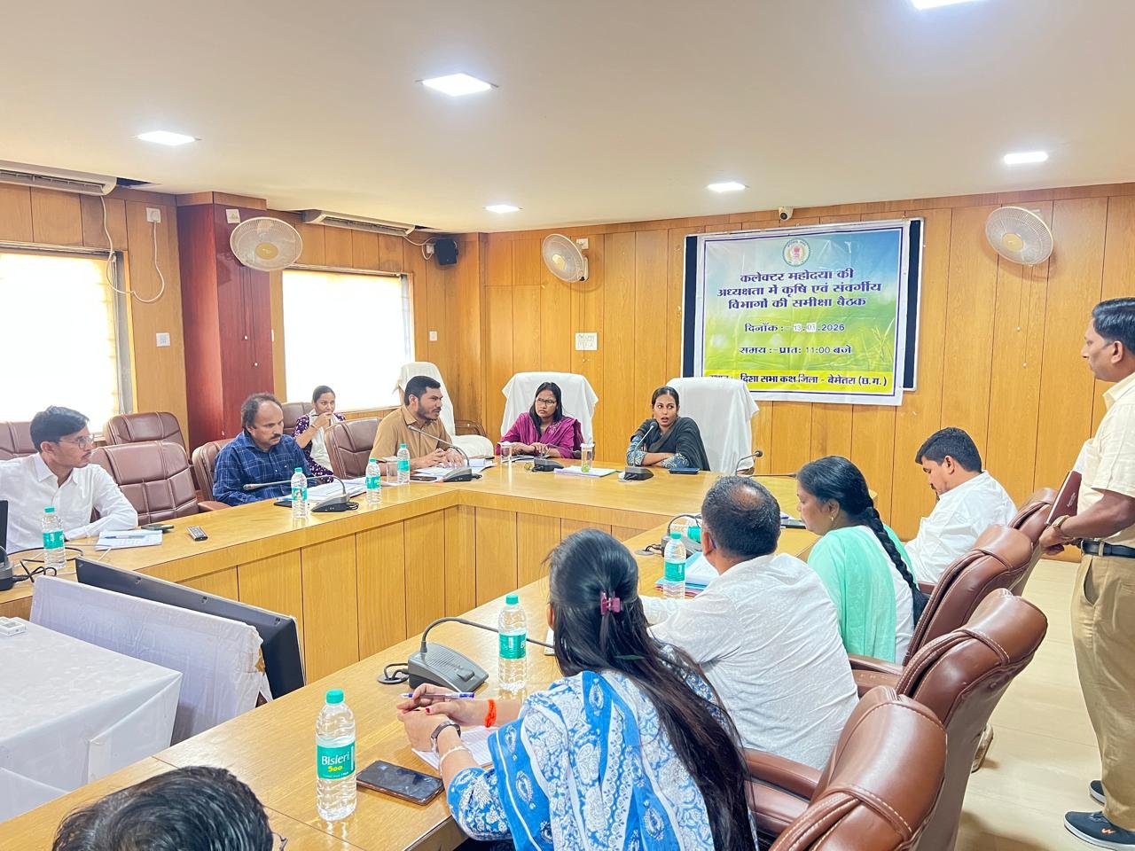 बेमेतरा, 13 मार्च 2026 । कलेक्टर सुश्री प्रतिष्ठा ममगाईं ने आज जिला कार्यालय के सभाकक्ष में कृषि एवं संवर्गीय विभागों की समीक्षा बैठक लेकर विभिन्न योजनाओं और गतिविधियों की प्रगति की विस्तार से समीक्षा की। बैठक में कृषि, उद्यानिकी, पशुधन विकास एवं मत्स्य पालन विभाग द्वारा संचालित योजनाओं की वर्तमान स्थिति, लक्ष्य की प्राप्ति तथा किसानों को मिल रहे लाभ की जानकारी ली गई।
