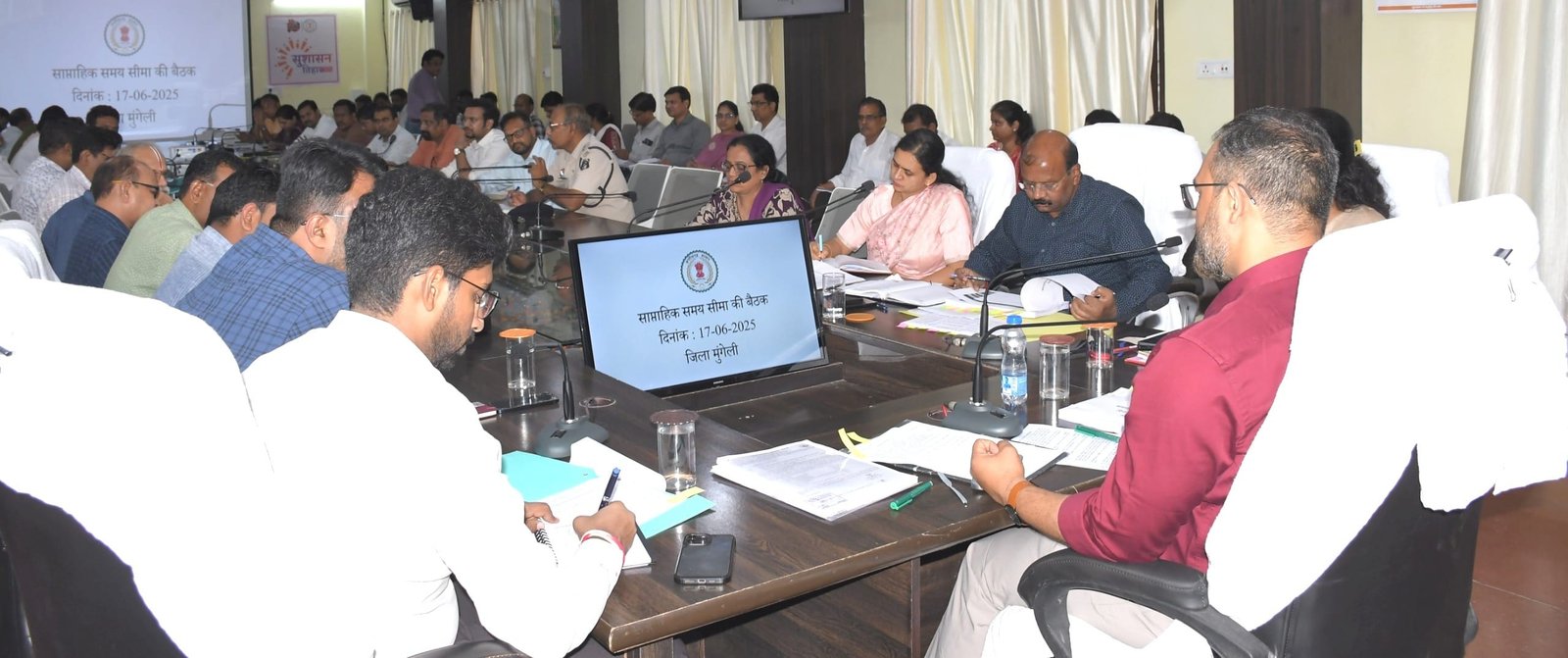 मुंगेली, 17 जून 2025 । कलेक्टर कुन्दन कुमार ने जिला कलेक्टोरेट स्थित मनियारी सभाकक्ष में समय-सीमा की बैठक ली। बैठक में उन्होंने शासन की विभिन्न योजनाओं का जिले में जमीनी स्तर पर क्रियान्वयन की जानकारी ली। कलेक्टर ने कहा कि स्कूली बच्चों की आय, जाति और निवास बनाने के लिए अभियान चलाया जाएगा। इसके लिए कार्ययोजना बनाकर काम करें। बेहतर कार्य के लिए सम्मानित भी किया जाएगा। उन्होंने राजीव गांधी जलाशय (खुड़िया बांध) को इको टूरिज्म के रूप में डेवलप करने हेतु आवश्यक कार्ययोजना बनाने के भी निर्देश दिए। उन्होंने पीएम जनमन में आवश्यक प्रगति लाने, क्रेडा विभाग द्वारा सोलर बैटरी आदि की आवश्यक मरम्मत करने कहा। कलेक्टर ने एटीआर से विस्थापित गांवों में पंचायत भवन, स्कूल, आंगनबाड़ी, स्किल डेवलपमेंट के साथ ही आवश्यक संरचनाओं की कार्ययोजना बनाने के निर्देश दिए।वृक्षारोपण महाभियान के सफल आयोजन हेतु आवश्यक निर्देशकलेक्टर ने ‘‘एक पेड़ मॉ के नाम 2.0’’ के तहत जिले में सर्व संबंधित अधिकारियों को वृक्षारोपण महाभियान के सफल आयोजन हेतु आवश्यक तैयारियां सुनिश्चित करने के निर्देश दिए। सभी नगरीय निकायों में पौधारोपण के लिए आवश्यक तैयारी सुनिश्चित कर लें। उन्होंने कहा कि वृक्षारोपण के साथ उसकी सुरक्षा भी जरूरी है। आने वाले समय में वृक्षारोपण का आउटकम दिखना चाहिए। सभी विभाग प्रमुख जगह का चिन्हांकन कर वृक्षारोपण कराएं। स्कूल, आंगनबाड़ी, एवं सभी कार्यालय परिसर में पौधे लगने चाहिए। उन्होंने जल संरक्षण के लिए बोर रिचार्ज के सम्बन्ध में जानकारी ली और आवश्यक निर्देश दिए।किसानों को खाद-बीज की समस्या ना होकलेक्टर ने जिला विपणन अधिकारी से समितियों में खाद-बीज की उपलब्धता की जानकारी लेते हुए किसानों को उच्च गुणवत्ता का खाद-बीज दिलाने और अमानक खाद-बीज विक्रय करने वाले के विरूद्ध आवश्यक कार्यवाही सुनिश्चित करें। किसानों को खाद-बीज की समस्या ना हो। उन्होंने उठाव हेतु संग्रहण केन्द्रों में शेष बचे भंडारित धान की जानकारी ली और मिलर्स से समन्वय स्थापित कर शीघ्र उठाव कराने के निर्देश दिए। कलेक्टर ने योग संगम और हरित योग की थीम पर आयोजित होने वाले योग दिवस की तैयारियों के संबंध में चर्चा करते हुए जिला स्तरीय योग कार्यक्रम के बेहतर आयोजन के लिए कहा।निर्माणाधीन सड़क मार्गों को गुणवत्ता के साथ समय-सीमा में पूरा करेंकलेक्टर ने पीडब्लूडी विभाग के कार्यपालन अभियंता को निर्माणाधीन सड़क मार्गों की जानकारी ली और पूर्ण गुणवत्ता के साथ प्राथमिकता से समय-सीमा में पूरा करने के निर्देश दिए। उन्होंने मुख्यमंत्री शिक्षा गुणवत्ता अभियान, मुख्यमंत्री घोषणा पोर्टल की मॉनिटरिंग, लोक सेवा गारंटी अंतर्गत लंबित आ