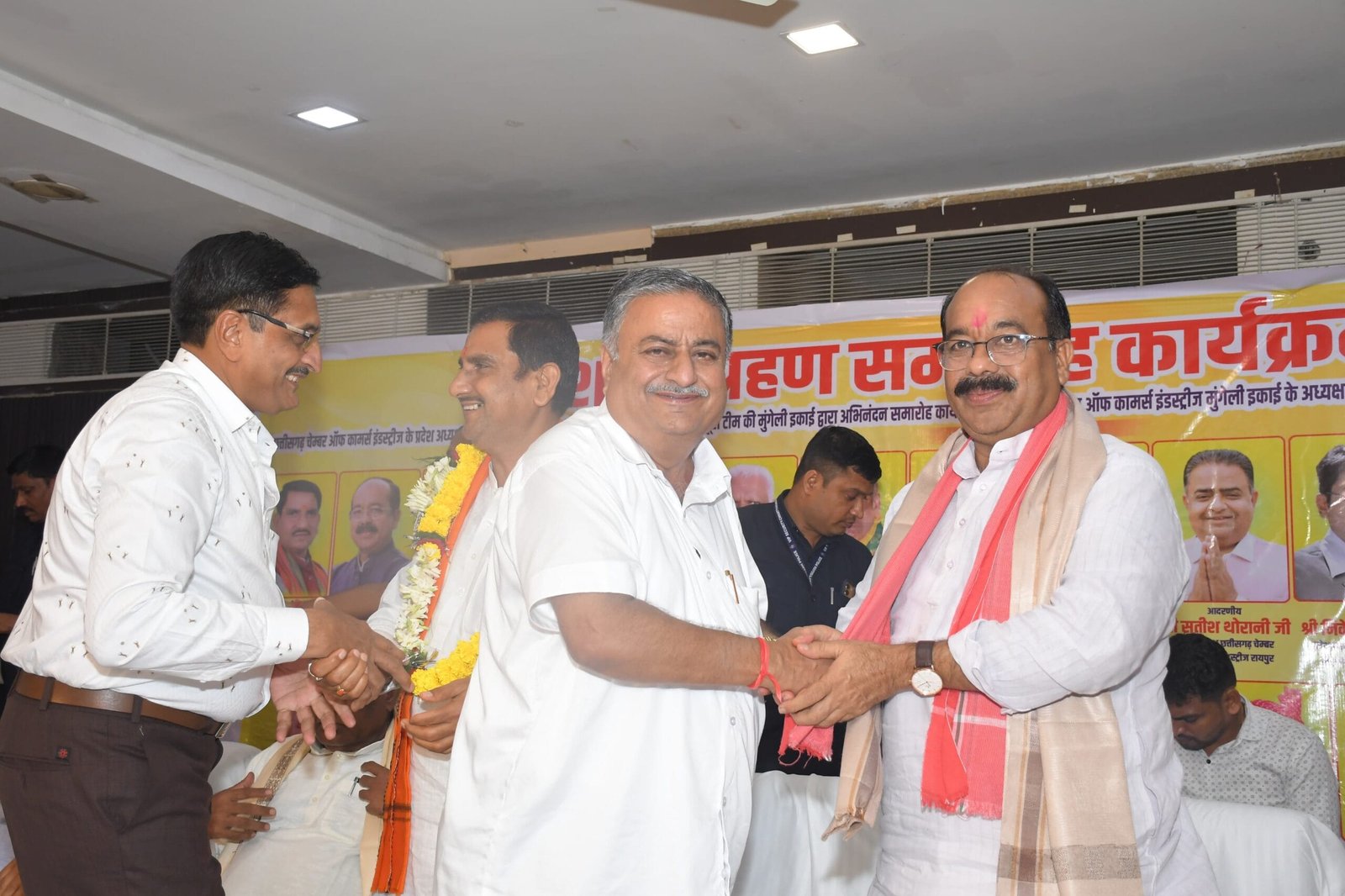 मुंगेली । छत्तीसगढ़ चेम्बर ऑफ कॉमर्स एंड इंडस्ट्री, जिला इकाई मुंगेली की नवगठित कार्यकारिणी का भव्य शपथ ग्रहण समारोह शनिवार को गरिमामय वातावरण में संपन्न हुआ। कार्यक्रम में मुख्य अतिथि के रूप में केंद्रीय राज्य मंत्री तोखन साहू रहे। उपमुख्यमंत्री अरुण साव और रायपुर सांसद बृजमोहन अग्रवाल, मुंगेली विधायक पुन्नू लाल मोहले, बिल्हा विधानसभा के विधायक धरमलाल कौशिक, बिलासपुर विधायक अमर अग्रवाल ने कार्यक्रम की अध्यक्षता किया। वही विशिष्ट अतिथि के रूप जिला पंचायत अध्यक्ष श्रीकांत पांडे, जनपद अध्यक्ष रामकमल सिंह ठाकुर, भाजपा अध्यक्ष दीनानाथ केशरवानी सहित कई गणमान्य अतिथियों की उपस्थिति ने आयोजन को विशेष बना दिया। शपथ ग्रहण समारोह गणेश जी की पूजा अर्चना व दीप प्रज्वलित कर कार्यक्रम की शुरूआत किया गया। इस दौरान सभी अतिथियों को माल्यापर्ण व शॉल भेंट कर आत्मीय स्वागत किया।कार्यक्रम को संबोधित करते हुए केंद्रीय राज्य मंत्री तोखन साहू ने कहा कि यह अवसर केवल औपचारिकता नहीं, बल्कि विकसित भारत के निर्माण में व्यापारी वर्ग की सक्रिय भागीदारी का प्रतीक है। उन्होंने ‘Ease of Doing Business’, डिजिटल व्यापार, पारदर्शिता और स्टार्टअप इंडिया जैसी केंद्र सरकार की योजनाओं को रेखांकित करते हुए कहा कि इन पहलों से स्थानीय उद्यमिता को नई दिशा मिल रही है। उन्होंने ‘Vocal for Local’ को अपनाते हुए स्थानीय उत्पादों को ब्रांडिंग, ई-कॉमर्स और निर्यात से जोड़ने की आवश्यकता बताई। उन्होंने कहा, “हर चेम्बर और हर व्यापारी यदि विकसित भारत के संकल्प में सहभागी बने, तो देश की अर्थव्यवस्था नई ऊँचाइयों पर पहुंचेगी। मुंगेली जैसे क्षेत्र नवाचार, उत्पादन और निर्यात के केंद्र बनें — यही हमारा लक्ष्य है।” उन्होंने चेम्बर भवन के निर्माण हेतु 15 लाख रुपए देने की घोषणा भी की।उपमुख्यमंत्री अरुण साव ने मुंगेली के व्यापारियों की एकता की सराहना करते हुए कहा कि व्यापारी वर्ग की एकजुटता से ही मुंगेली का समुचित विकास संभव हो पाया है। उन्होंने भी चेम्बर भवन निर्माण हेतु 25 लाख रुपये की घोषणा की।रायपुर सांसद बृजमोहन अग्रवाल ने आतिशबाजी करते हुए गर्म जोशी के साथ स्वागत करने पर उन्होंने सभी व्यापारी बंधुओ को आभार व्यक्त करते हुए व्यापारियों की भूमिका को राष्ट्र निर्माण का आधार बताते हुए कहा कि व्यापारी न केवल सरकार को कर देते हैं बल्कि गांव-गांव तक रोजगार, वस्तुएं और सेवाएं पहुंचाते हैं। उन्होंने कहा कि प्रधानमंत्री की योजनाएं जैसे आवास योजना, नल-जल योजना आदि व्यापार एवं उद्योग के योगदान से ही संभव हो पाई हैं। उन्होंने भविष्य में मुंगेली को एक भव्य ऑडिटोरियम देने का आश्वासन भी दिया।मुंगेली विधायक पुन्नूलाल मोहले ने भी मंच से न