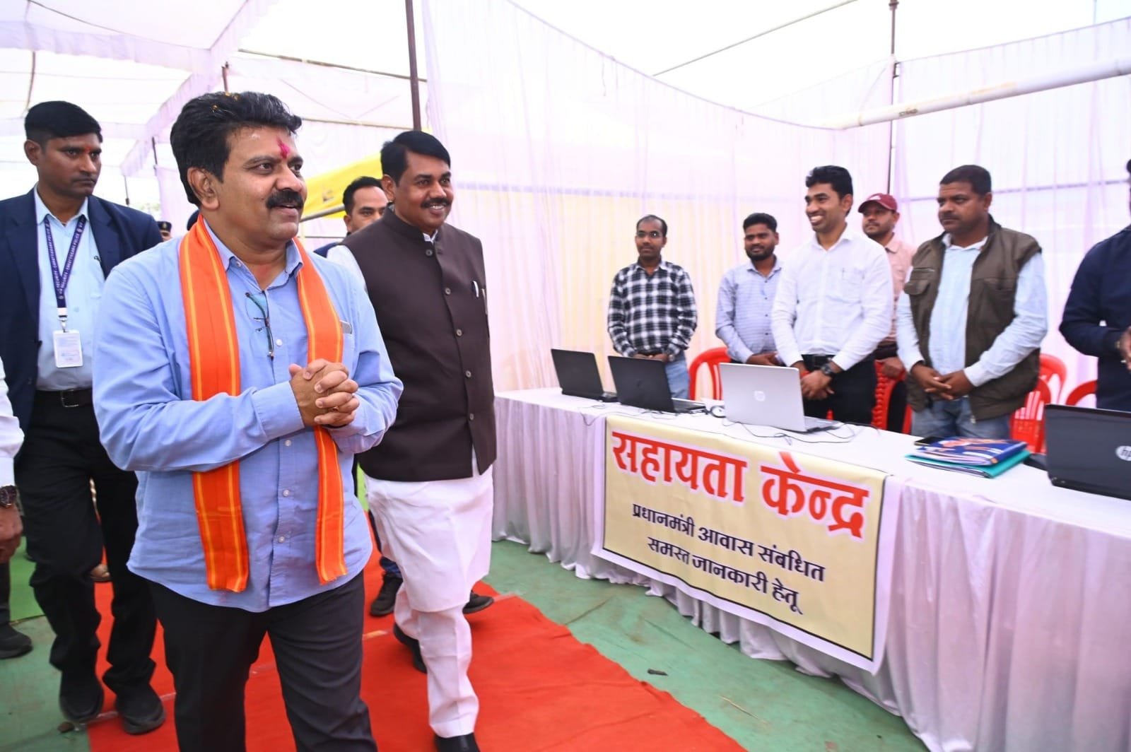 उपमुख्यमंत्री विजय शर्मा सहित जनप्रतिनिधि ने प्रधानमंत्री आवास योजना के हितग्राहियों का पारंपरिक संस्कृति से चरण पखार कर ग्रामीण परिवारों का सम्मान कर स्वागत किया। उपमुख्यमंत्री शर्मा ने आवास मेले में कबीरधाम जिले के लाभार्थियों को प्रधानमंत्री आवास योजना के तहत बने नए आवास की चाबी और पूर्णतः प्रमाण पत्र भेंट की। उप मुख्यमंत्री ने आवास मेला में स्वास्थ्य विभाग, आरटीओ, खाद्यविभाग, समाज कल्याण, कृषि विभाग, उद्यानिकी विभाग, मत्स्य विभाग, पशु चिकित्सा विभाग, श्रम विभाग, लोक स्वास्थ्य यांत्रिकी विभाग, पंचायत एवं ग्रामीण विकास विभाग द्वारा लगाए गए स्टॉल का अवलोकन किया। इस अवसर पर कलेक्टर गोपाल वर्मा, जिला पंचायत सीईओं अजय त्रिपाठी, जिला पंचायत अध्यक्ष सुशीला भट्ट, जिला पंचायत सदस्य रामकुमार भट्ट, जनपद अध्यक्ष इंद्राणी चंद्रवंशी, दिनेश चंद्रवंशी, उमंग पाण्डेय सहित जनप्रतिनिधि, हितग्राही और क्षेत्रवासी उपस्थित थे।