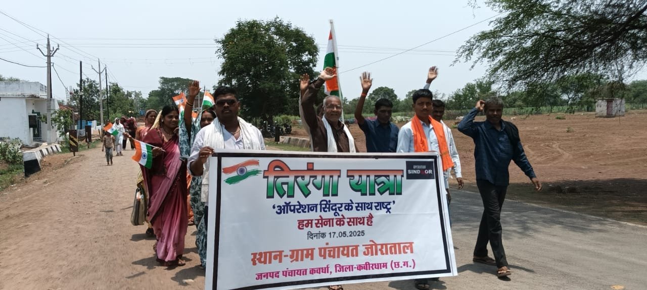 कवर्धा, 17 मई 2025। देश की रक्षा में समर्पित भारतीय सेना के अदम्य शौर्य, वीरता और बलिदान को नमन करते हुए कबीरधाम जिले की समस्त ग्राम पंचायतों में आज तिरंगा यात्रा निकाली गई। ग्राम पंचायतों में एक अभूतपूर्व दृश्य सामने आया, जब ऑपरेशन सिंदूर के लिए हजारों लोगों ने तिरंगा हाथ में थामे देशभक्ति की मिसाल पेश की। यह नजारा केवल एक यात्रा नहीं, बल्कि राष्ट्र के प्रति ग्रामीणों की अटूट निष्ठा, एकजुटता और भावनात्मक जुड़ाव का प्रतीक बन गया।जिले के हर गांव, हर गली में आज तिरंगे की शान लहराई। गांवों में सुबह से ही देशभक्ति का माहौल था। युवाओं के जोश, बुजुर्गों के अनुभव, महिलाओं की सहभागिता और बच्चों के उल्लास ने इस यात्रा को एक जनआंदोलन का रूप दे दिया। यात्रा के दौरान देशभक्ति गीतों की धुन पर कदमताल करते हुए ग्रामीणों ने भारत माता की जय, वंदे मातरम्, और जय हिंद के नारों से वातावरण को गूंजायमान कर दिया। तिरंगा यात्रा में भाग लेने वाले सभी प्रतिभागी हाथों में तिरंगा ध्वज और नागरिक, हम सेना के साथ हैं, ‘ऑपरेशन सिंदूर – राष्ट्र के लिए समर्पित’ जैसे संदेश लिखी तख्तियां लेकर चले। यात्रा पूर्णतः शांतिपूर्ण, अनुशासित एवं संगठित रही, जिसमें देश के प्रति समर्पण और एकजुटता की भावना स्पष्ट झलक रही थी।इस आयोजन का मुख्य उद्देश्य भारतीय सशस्त्र बलों और अर्धसैनिक बलों को धन्यवाद देना है, हाल ही में ऑपरेशन सिंदूर में भारत की सफलता का जश्न मनाना तथा वीर शहीदों को श्रद्धांजलि अर्पित करना था। इस पहल ने गांवों में राष्ट्रप्रेम की नई लहर पैदा की है। ग्राम पंचायतों ने तिरंगा यात्रा के सफल आयोजन में महत्त्वपूर्ण भूमिका निभाई। गांवों के सरपंच, सचिव, जनप्रतिनिधि, स्व-सहायता समूहों की महिलाएं, शिक्षक, आंगनबाड़ी कार्यकर्ता, युवक मंडल और स्कूली छात्रों ने बढ़-चढ़कर भाग लिया। ग्रामीणों ने स्पष्ट संदेश दिया कि वे सिर्फ दर्शक नहीं, बल्कि राष्ट्र की रक्षा में सेना के साथ कंधे से कंधा मिलाकर खड़े हैं। यह तिरंगा यात्रा केवल एक आयोजन नहीं, बल्कि सेना के पराक्रम को जनमानस की आवाज़ में बदलने का सशक्त प्रयास रहा। ऑपरेशन सिंदूर के तहत आयोजित इस तिरंगा यात्रा ने यह सिद्ध कर दिया कि देश की रक्षा केवल सीमाओं तक सीमित नहीं, बल्कि यह प्रत्येक नागरिक का नैतिक दायित्व है। यह आयोजन केवल वर्तमान पीढ़ी ही नहीं, बल्कि आने वाली पीढ़ियों के लिए भी एक प्रेरक उदाहरण प्रस्तुत करता है कि किस प्रकार देशभक्ति का जज़्बा जन-जन के दिलों में जिंदा है। Post navigationसुशासन तिहार-2025 समयबद्ध एवं पारदर्शी तरीके से आमजनों तक योजनाओं को पहुंचाना सुशासन का उद्देश्य – विधायक